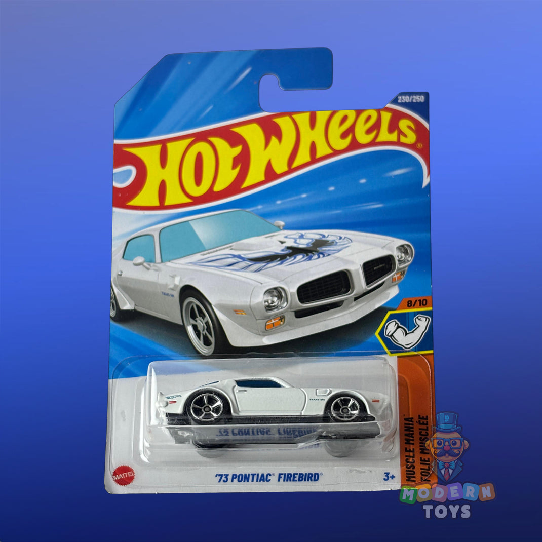 A classic American muscle car from the 2025 Muscle Mania series. This ’73 Pontiac Firebird comes in a clean white finish with a bold hood graphic, sporty stance, and detailed muscle-car styling. A must-have collectible for Pontiac and muscle car enthusiasts.